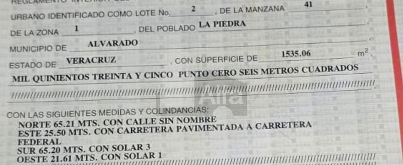 REF. 2506/20 - Terreno en Venta en La Piedra, Alvarado, Ver.