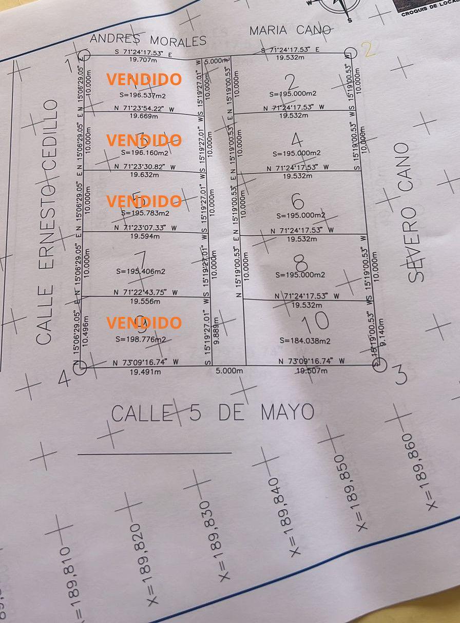 Terreno 5 VENDIDO con 195.78 m2 Medidas: 19.6X10 Precio $209,485 pesos